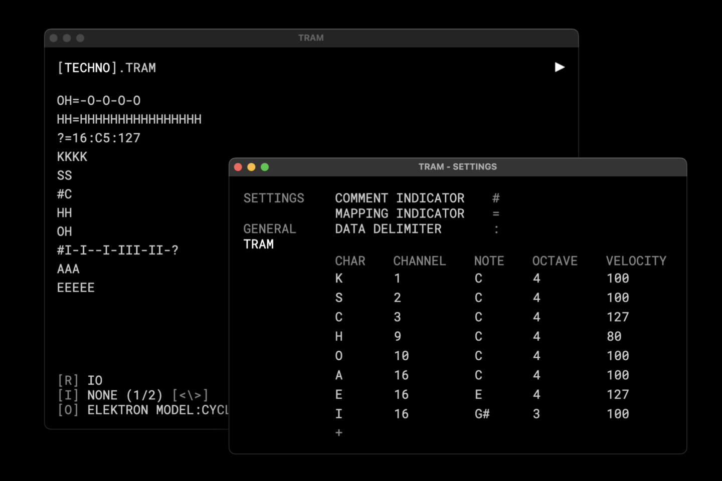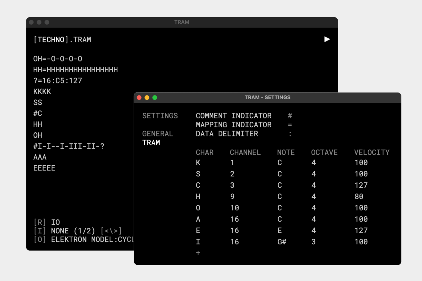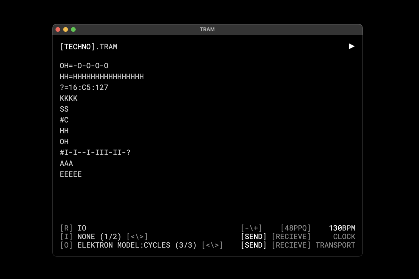 TRAM is a single character programming language inspired by german concrete poetry that can send MIDI, mostly used for live coding